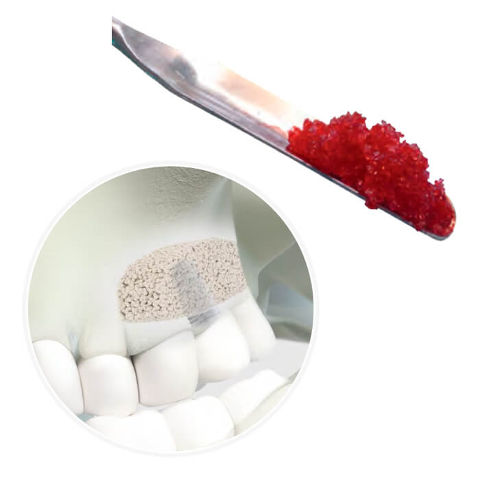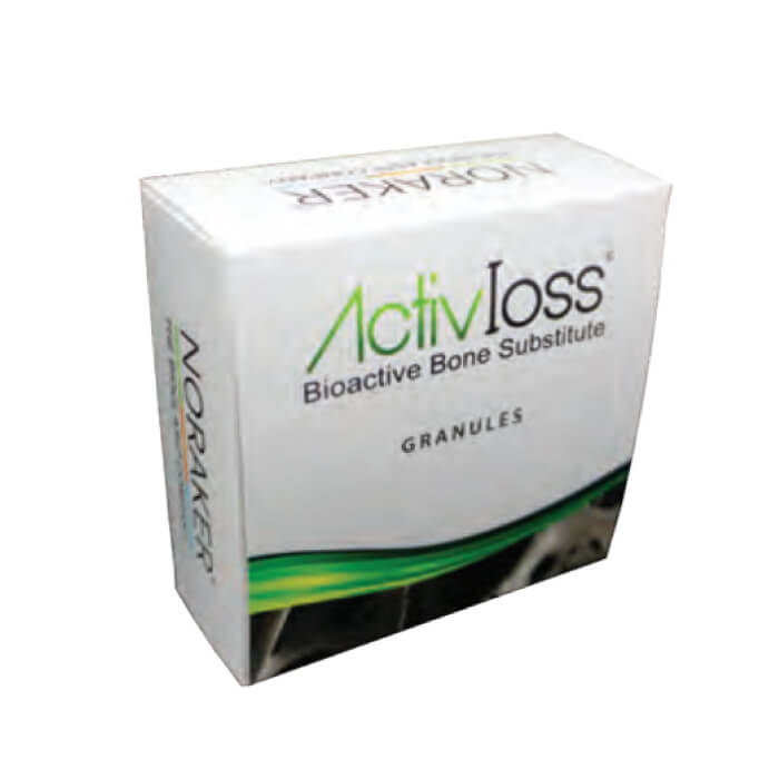 • Implante Granulado para la regeneración de hueso maxilar. Esta cerámica (Bioactive Glass) está compuesta por Silicio, Calcio, Sodio y Fosforo: minerales naturales presentes en el cuerpo humano. Su composición natural permite una excelente biocompatibilidad para el relleno de defecto óseo y su gradual reemplazo de tejido funcional.